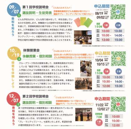 選抜説明・生徒発表を行います。令和7年度の入学希望者対象で、事前申込制です。