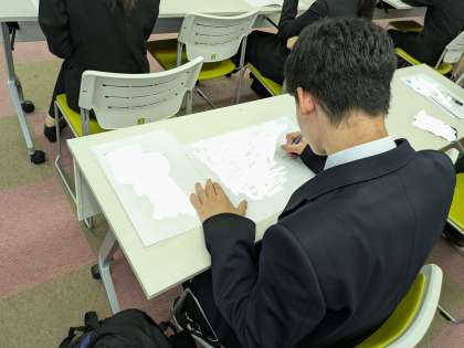 午後の部は、自己PR文の作成指導の後、2班に分かれ、集団面接練習を実施しました。生徒は緊張しながらも自分の立ち振る舞いを意識したり、頑張って自己PRを伝える姿が見られました。