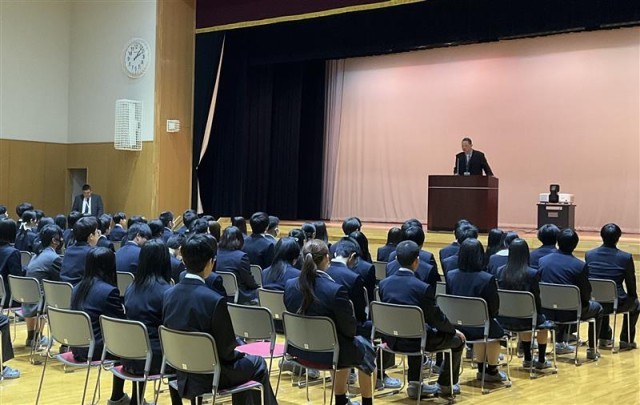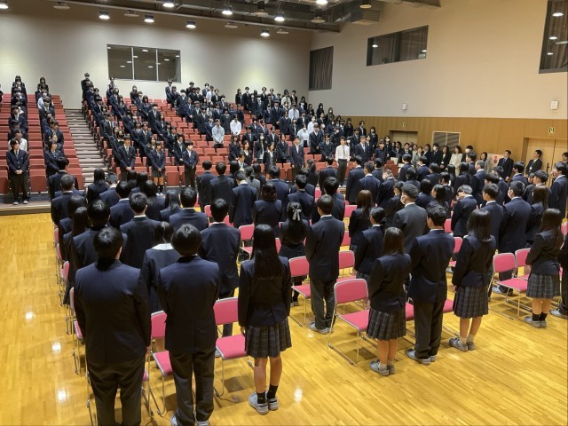始業式では、校長から「日常の当たり前と思えることにも好奇心を持ち、一生懸命に取り組んでみる、そんなことを大事にして過ごしてほしい。」というお話がありました。その後、対面式で新入生代表挨拶、在校生代表挨拶があり、「不安を持ちつつも、1歩踏み出してこの場に立っている。新しい仲間とともに、これからもたくさん挑戦していきたい。」という新入生代表生徒の立派な決意に対して、在校生代表からは「不安や心配なことはあると思うが、困ったときには先輩たちを頼ってほしい。」と上級生らしい挨拶がありました。