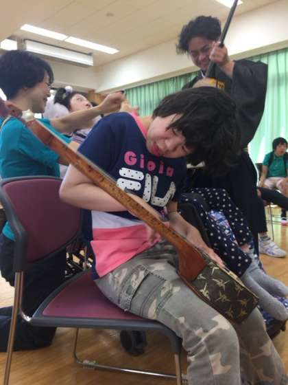休憩をはさんで,ワークショップ「♪三味線とセッションしよう♪」「♪三味線にふれてみよう♪」が始まりました。