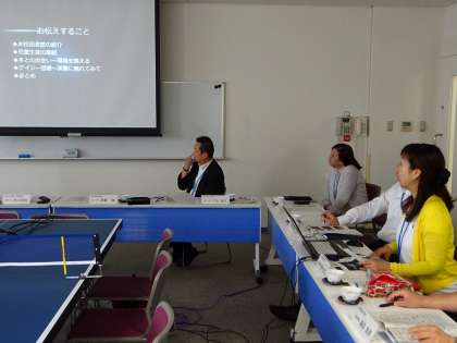 本日は,校長より今年度の学校全体の取組を説明した後,「図書館教育」や「障害者スポーツを通した元気でやさしい地域づくり」についての取組を各担当副教頭より説明しました。