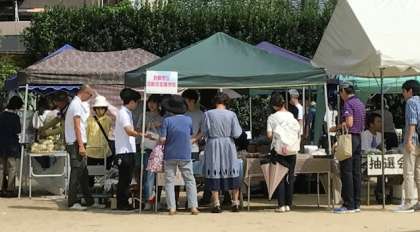 本日9月10日(日),西陣児童公園で『西陣の朝市 マルシェ』を開催しています。本校からも高等部の生徒3名がワーク製品の販売中です。