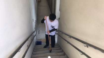 高等部ワークのメンテナンスは校内の清掃活動に取り組んでいます。普段,あまり使わない場所も丁寧に掃いたり,磨いたりしてくれる生徒たちのおかげで,校舎は永く美しく維持されていくのだろうと感じます。