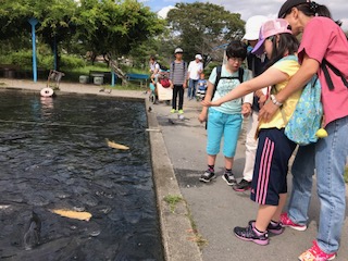 すごい勢いで鯉が近付いて、みんなびっくり‼️楽しかった。
