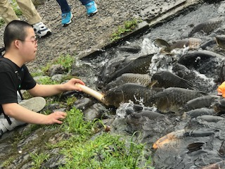 鯉の餌やり体験をしました。