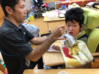 昼から造形活動,コーナー遊び,生ライブショーの3つの活動を終え,今から夕食タイムです。みんな元気に過ごしています!この後もまだまだ活動は続きます!