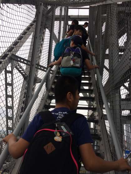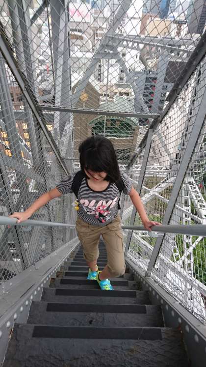 名古屋テレビ塔に来ました…外階段を上る組,エレベーターに乗る組に分かれて活動しますが,どちらも目指すは展望台です!