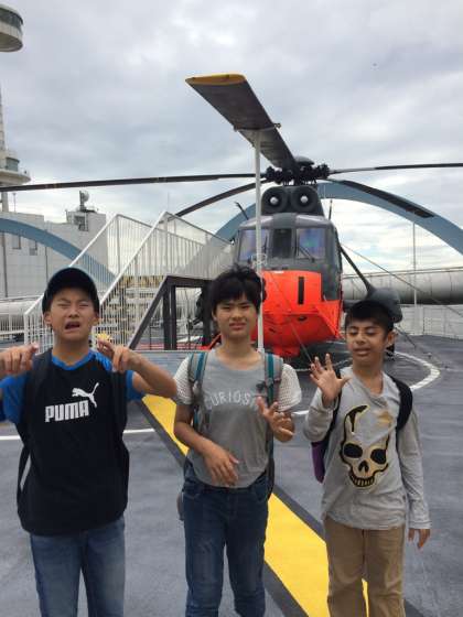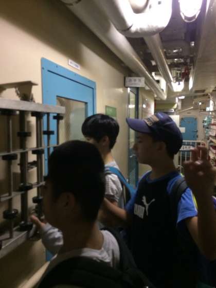南極観測船ふじの見学。みんな興味津々です。