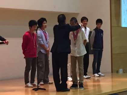 表彰では,「第29回京都市小学生絵画展」「第37回全教と障害者総合スポーツ大会陸上の部」に出展・出場した児童生徒の表彰を行いました。