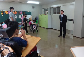 校長先生は,「後期は『あきぞらフェスタ』などいろいろな行事がありますが体調に気をつけて,『笑顔』をテーマに取組んでください」と話されました。