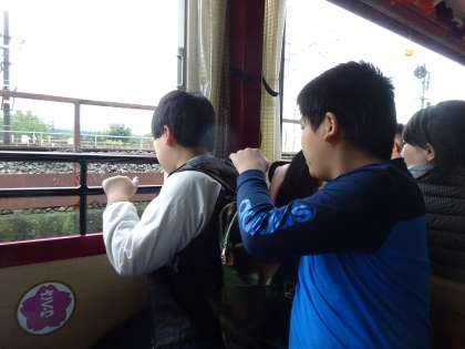 SLスチーム号に乗りました。ゆっくりの運行で景色や外気を感じることができました。「ボーッ!!」という音と共に煙突から出る煙を間近に見ることもできました。