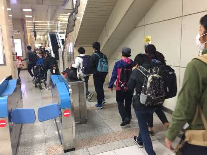 京都駅に8:20に集合し,出発式です。校長先生からは「楽しく安全な修学旅行にしましょう」とお話しがありました。