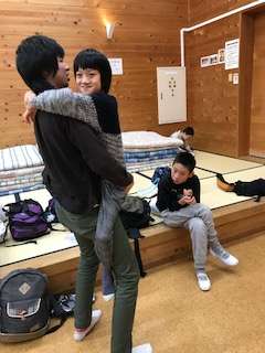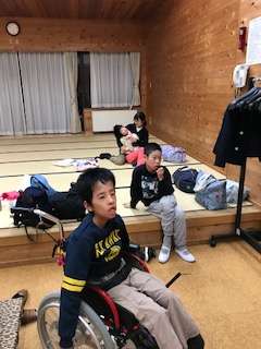 本日の宿泊施設,しあわせの村あおぞらに到着しました!部屋の大きさはなんと100畳!夕食までの時間,ゆっくりします!