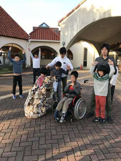 朝のラジオ体操!天気もいいし,気持ちいいです!