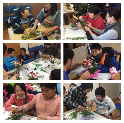 今年度も成逸女性会の方々に来ていただき,中学部の生徒にフラワーアレンジメントを教えていただきました,