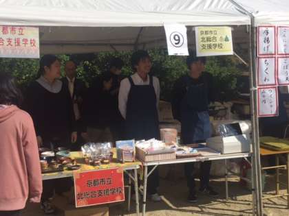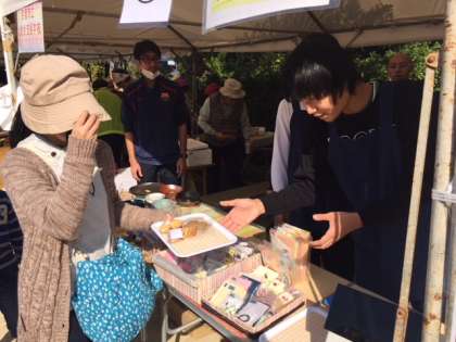 10:30〜ステージでの発表がはじまり,各種遊びの体験コーナーや,福祉に関する啓発展示などで会場は大盛況です。模擬店やバザーなども行われ,本校もワークスタディの製品の販売コーナーを担当し,高等部の生徒が販売の実習を行っています。