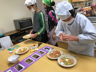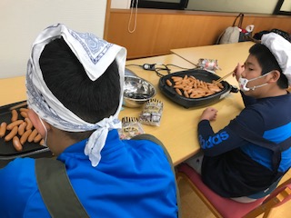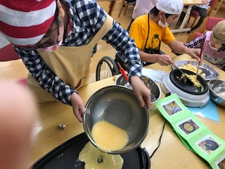 朝食準備…ウインナーとスクランブルエッグ、ミックスベジタブルを温めての味付けです。食べるのが楽しみ!