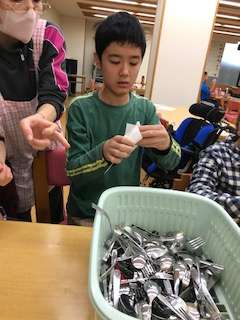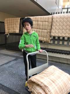 自分たちで使用した食器や布団の後片付け中です。