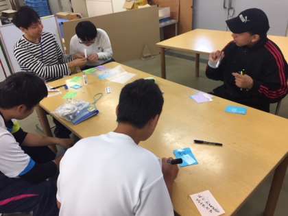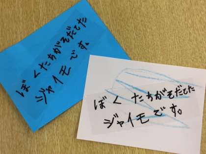 「農園」ユニットでは,授業後半にカード作りをしました。このカードは,「あきぞらフェスタ」で,農園で育てたジャガイモと一緒に配ります。