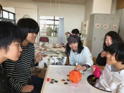 あきぞらフェスタの展示発表に向けて,7組ではフジテレビの球体展望室「はちたま」を見立てた箱に,思い出の写真を貼っていきました。