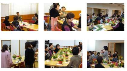 つぎに女性会の皆さまにご指導いただきながら,きれいなお花をそれぞれの感性を大切にしながらいけました。完成した作品はどれも素敵で,会場が華やかに彩られました。