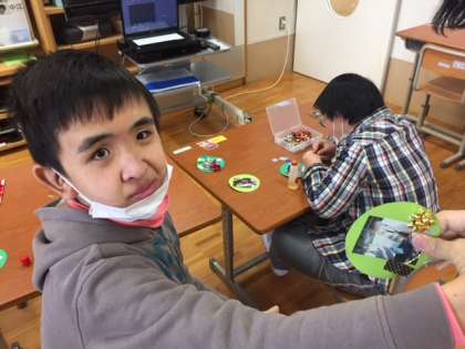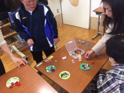 高等部3年「家庭・地域生活D」ユニットでは,壁面用クリスマスツリーの飾り作りをしました。