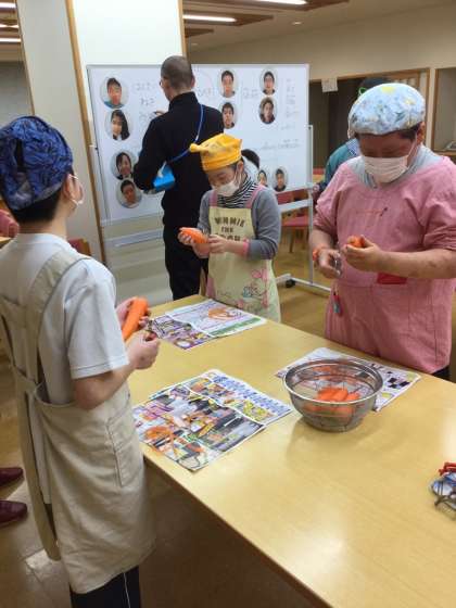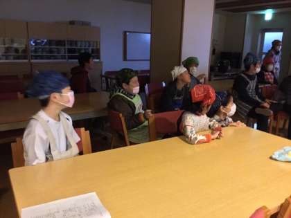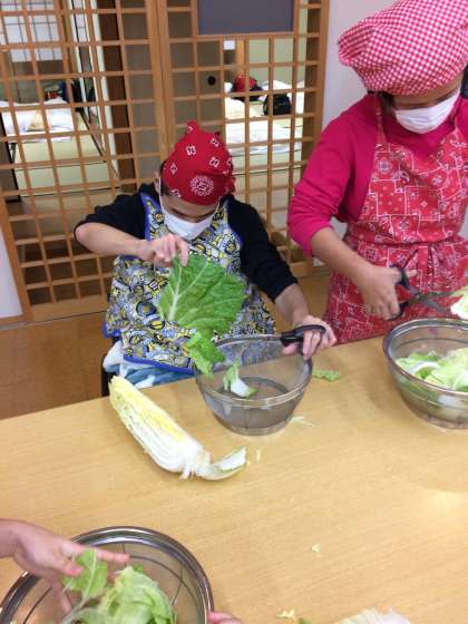 夕食は『鶏ちゃんこなべ』。おいしい晩ごはんのために,みんな真剣です!