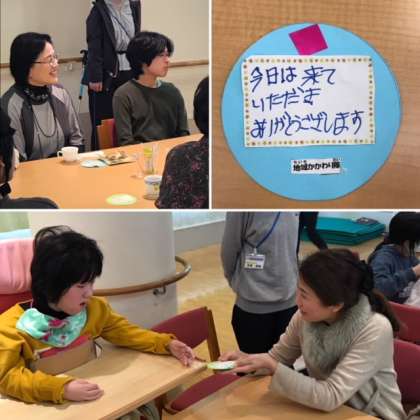 2月15日(木)ランチルームにて,高等部ライフスタディユニット『われら ちいき かかわり隊』の生徒たちがお世話になった地域の方々をご招待し,学習をしました。お茶やクッキーでおもてなしをしたり,写真や動画を見ながら学習を進行したり,それぞれの役割を担いながら,これまでの活動を振り返りました。テーブルを囲んで同じ席についていただいた民生委員の方と笑顔で話す姿が印象的でした。また,民生委員の方の手品ショーも鑑賞させていただきました。