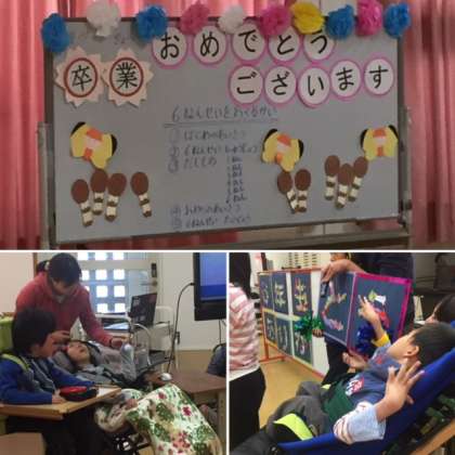 「6ねんせいをおくるかい」がプレイエリアで行われました。6年生の卒業をお祝いし,各学年の子ども達がだしものをしました。音楽に合わせて踊ったり,思い出のスライドショーを楽しみ,6年生と楽しいひとときを過ごしました。