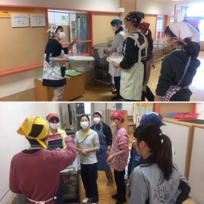 子ども達が毎日,安全・安心して楽しく給食が食べられるように,配膳の手順や導線の確保,アレルギー食の子どもへの対応,担当者の確認などを一つ一つ確認しました。
