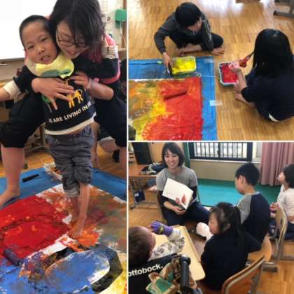 先に旗の色塗りを終えた児童は,本の読み聞かせ。