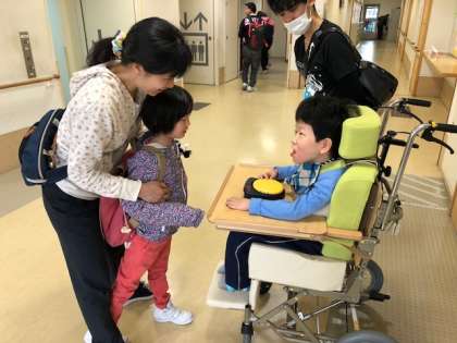 とても上手にスイッチを押すことができ,たくさんの挨拶の返事があり,大満足の様子でした。