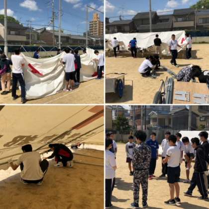 「あおフェス」にむけて,生徒会本部役員を中心とした準備委員がテントを立ててくれました。