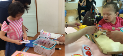 造形活動で作ったレタスや卵などの商品や模型を使って,買い物学習をしました。