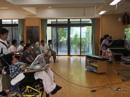 「君をのせて」を2部合唱で,「ビリーブ」は生徒が伴奏し,歌詞はパワーポイントを生徒が操作しながら,大きく素敵な歌声が音楽表現スペースに響きわたりました。生徒達のがんばりがすごく伝わってきました。