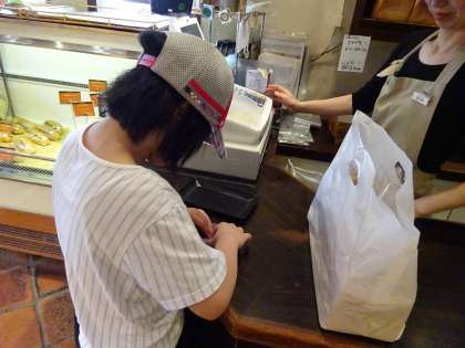 パン屋さんでは食パンを,スーパーではハムやバター,チーズなどなど…
