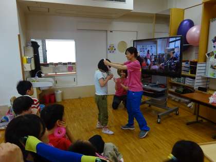 午後からは,たくさんの写真を見ながら2日間の振り返りをしました。最後には”宿泊の達人”のメダルをもらいました。