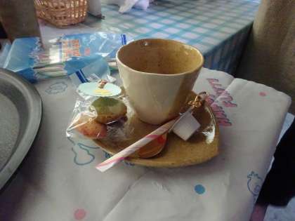 今日は,2名の生徒が接客活動を行いました。女性会の会合が行われていたこともあり,たくさんのコーヒーとクッキーのセットを運びました。