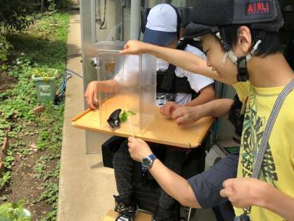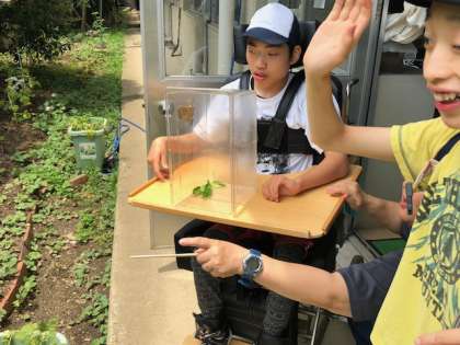 これまでの成長の様子を分教室のみんなで見守っていましたが,成虫になった今日はお別れの日となりました。みんなで大空に飛び立っていくクロアゲハチョウを見送りました!