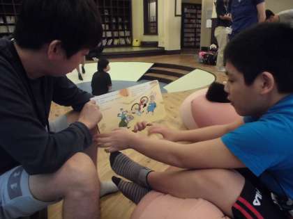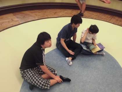 マンガミュージアムに到着。自分で好きな本を読んだり,読聞かせを聞いたり,知ってる漫画を探したりして満喫しました!