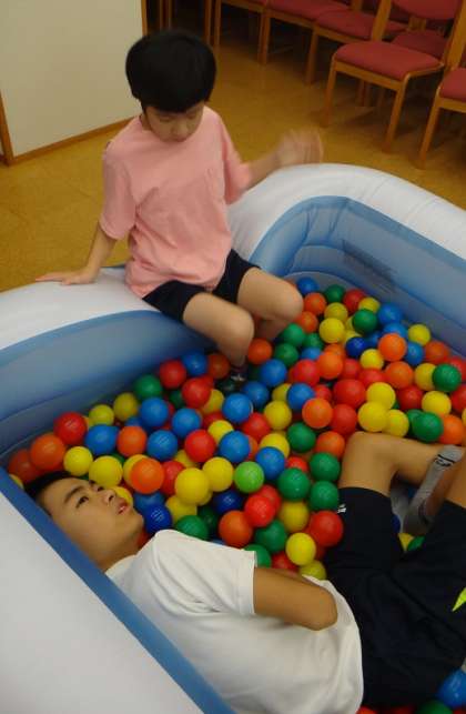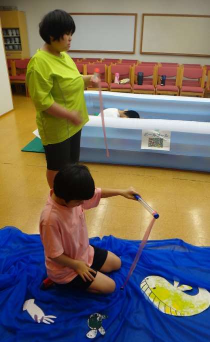 みんなで作った提灯を飾ったり,魚釣りをしたり,ボールプールでリラックスしたり・・・