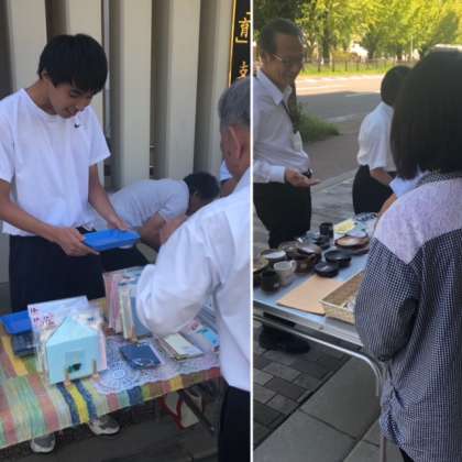 本日は,生徒達が前を通られる方々に,「いらっしゃいませ!どうぞ見ていってください!!」とお声かけすると,ニラ・ししとう20円,クッキー50円など人気商品はみるみるうちに売れていきました。お買い上げありがとうございました。