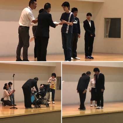 校長先生からは,「前期に取り組んだことで上手くいったこと,上手くいかなかったこともあると思いますが,無駄なことは何一つありません。後期からも自分らしく自分で精一杯頑張って欲しいです。」またここ最近の自然災害の話題から,「安全に気を付けることや被害にあわれた方々の1日も早くの復興を願っています。」とお話がありました。