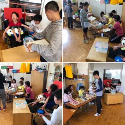 本日2回目の交流ということで,互いに緊張も少なくなり,高等部のやさしいお兄さんお姉さんに手伝ってもらいながら,小学部の子ども達は楽しくお店屋さんをしていました。