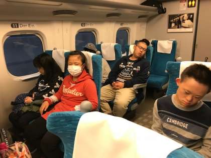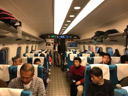 皆 落ち着いて 新幹線車内でゆっくり過ごしています。