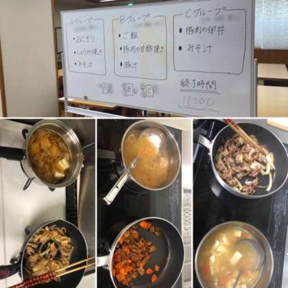 調理を始めると,初めてやることなどで不安になりながらも,グループの友達と相談しながら,無事調理を終えることができました。