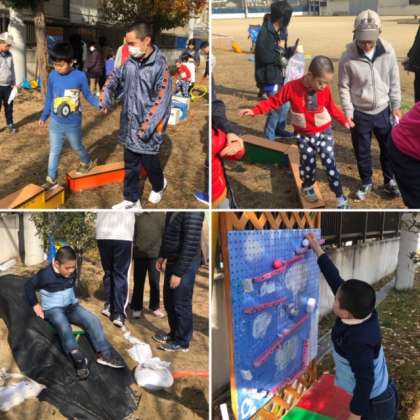 寒さが心配でしたが,日差しはあたたかく,高等部3年のお兄さんお姉さんたちと,一緒に楽しく遊びました。
