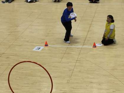 本校から高等部の生徒5名が参加しました。午前中はアキュラシー競技、午後からはディスタンス競技に出場し,みんな集中してディスクを投げ良い記録につながりました。