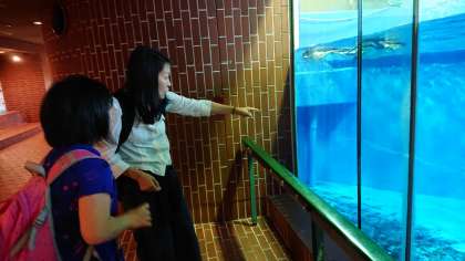 校長先生とペンギンを見たり、水中トンネルのような所に行ったりしました。