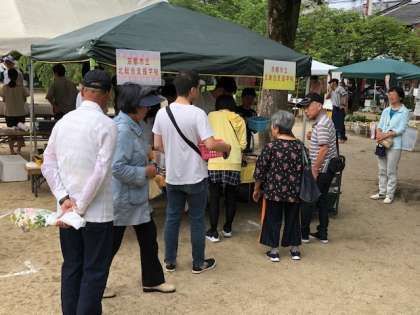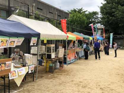 本日,6月9日(日)に西陣の朝市マルシェが,西陣中央公園で開催され,本校からも高等部生徒5名が参加し,ワーク製品の販売を行なっています。生徒達は「いらっしゃいませ」と大きな声を出して頑張っています。
